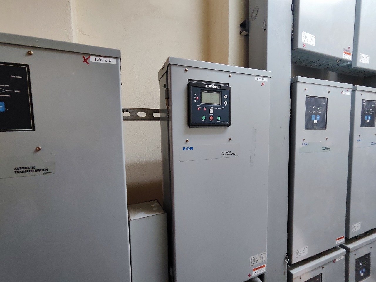 Transferencia de doble potencia (ATS): Compatible con conmutadores sin ruptura, de uno o dos ruptores; ofrece transferencia automática entre fuentes A y B