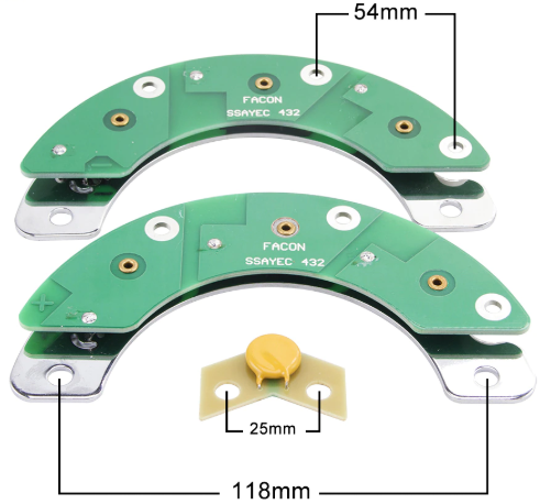 Incluye 6 diodos (3 positivos + 3 negativos) montados sobre placas semilunares