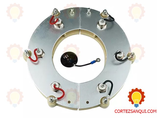 Placa de montaje robusta: Diáodo rectificador montado sobre una placa dividida en secciones positiva y negativa, con fuerte contacto mecánico y eléctrico